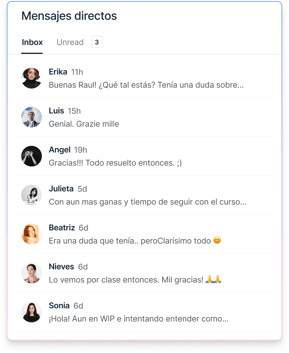 Con una sola inscripción tienes 1 año de acceso ilimitado a todos los cursos y talleres. Clases en directo + contenido grabado, para aprender a tu ritmo. Comunidad privada y eventos mensuales. Nuevos contenidos y recursos cada mes.