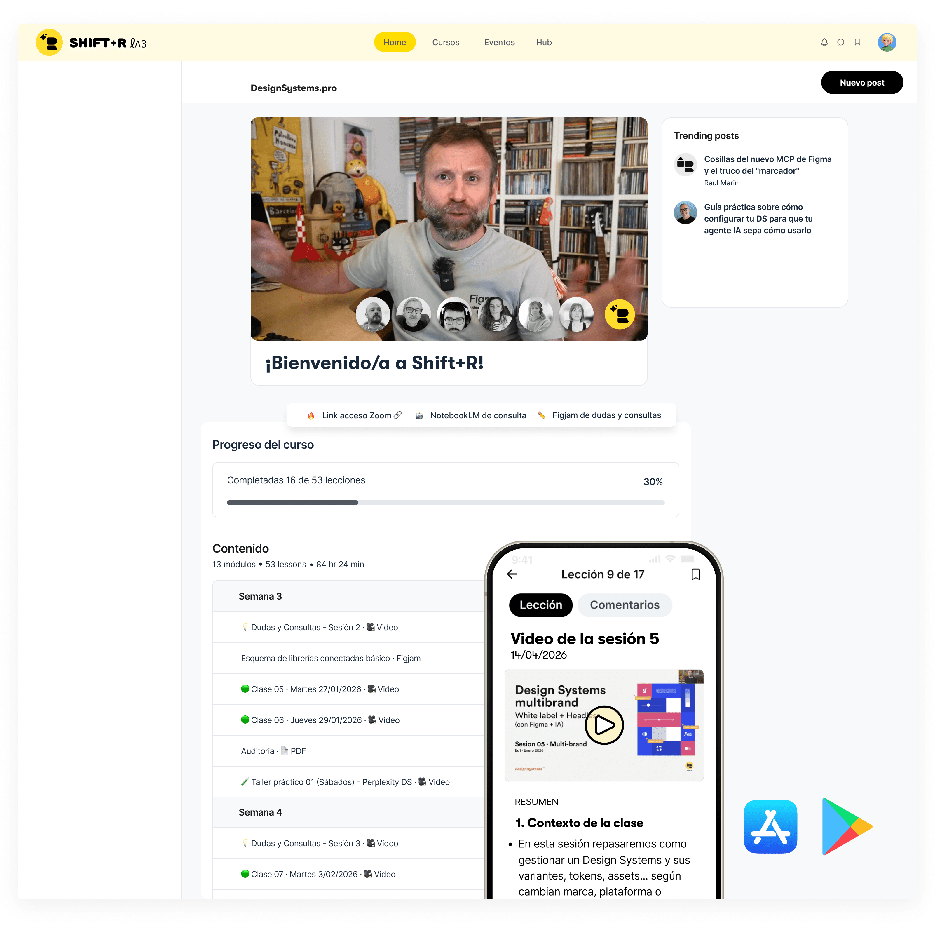Si trabajas en diseño digital, UX/UI, producto o sistemas de diseño, sí. Tanto si estás empezando como si buscas llevar tu perfil senior al siguiente nivel, Shift+R te ofrece contenido avanzado, práctica real y una comunidad que te empuja a crecer.